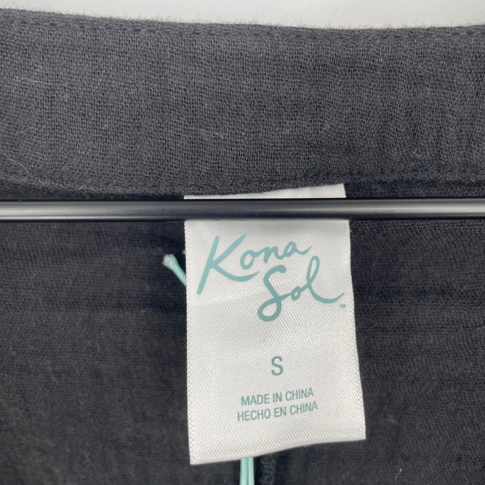 Kona Sol Womens Black V Neck Gauze Tunic Top Size S 3/4 Sleeve Pockets