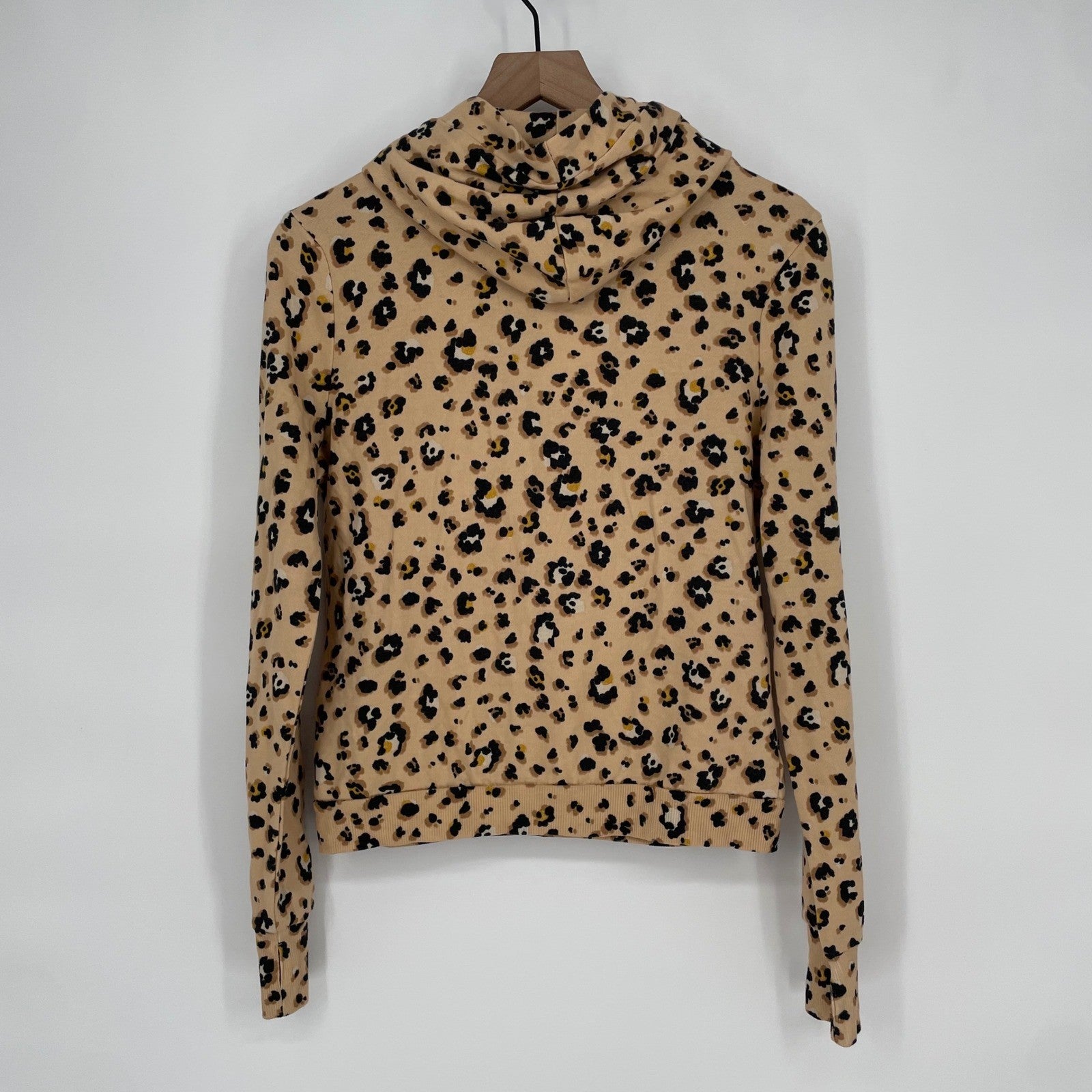 Love Fire Leopard Print Cowl Neck Hoodie Sweatshirt Pullover M