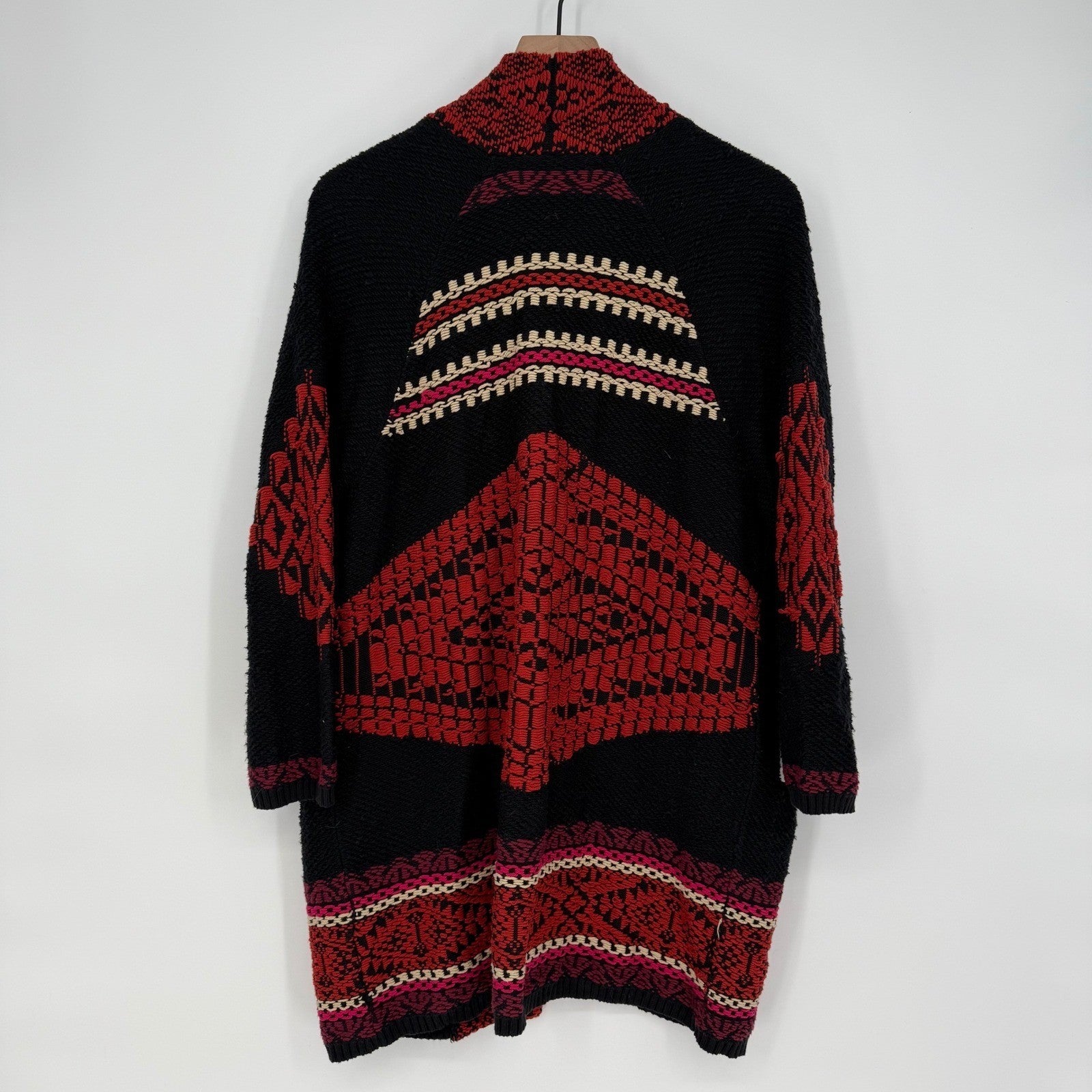 Lucky Brand Aztec Cardigan Sweater Chenille Texture Black Red Knit Boho Medium