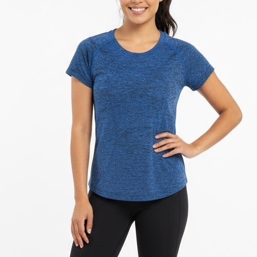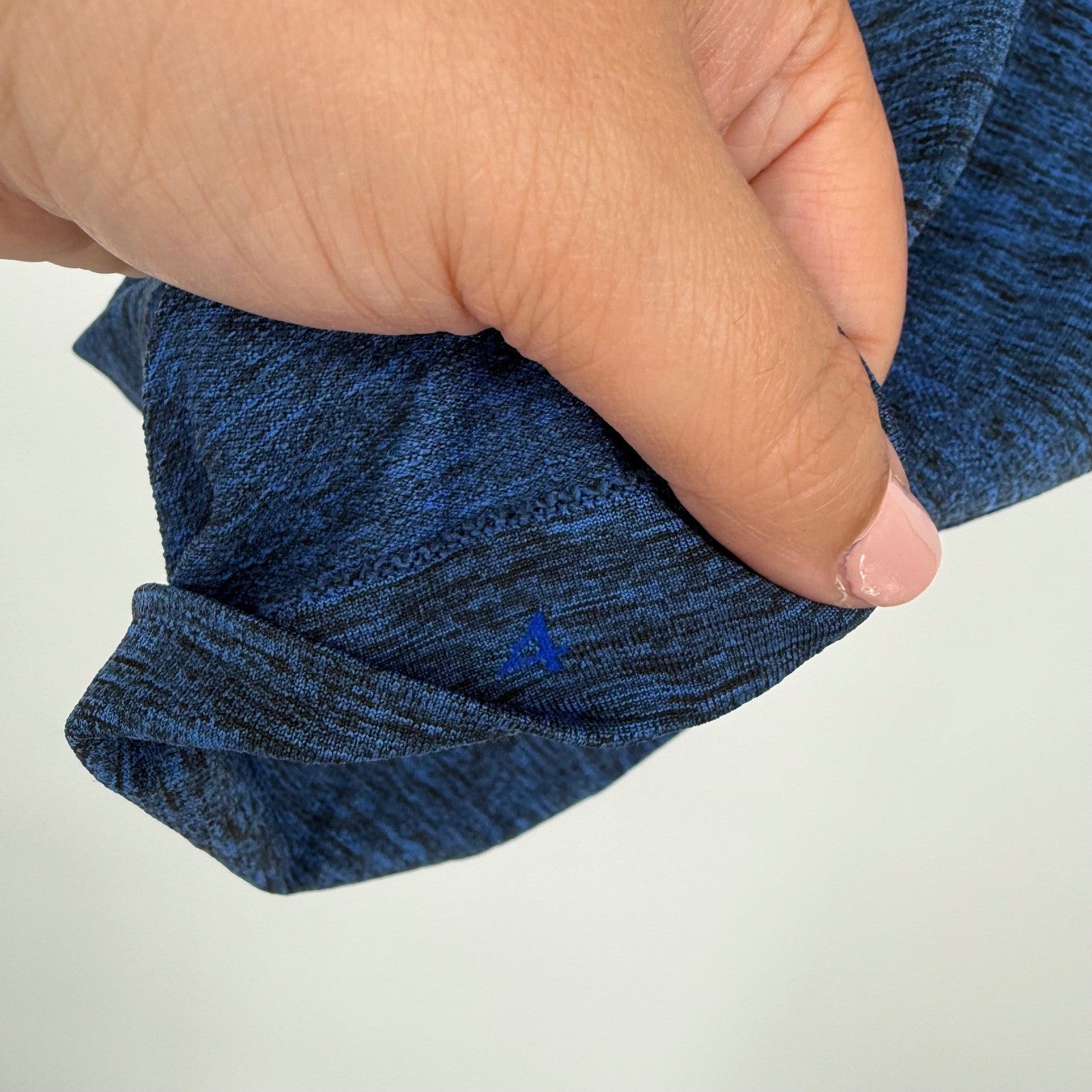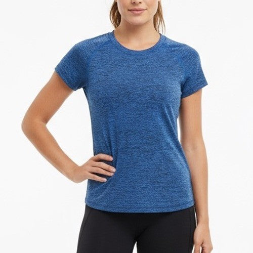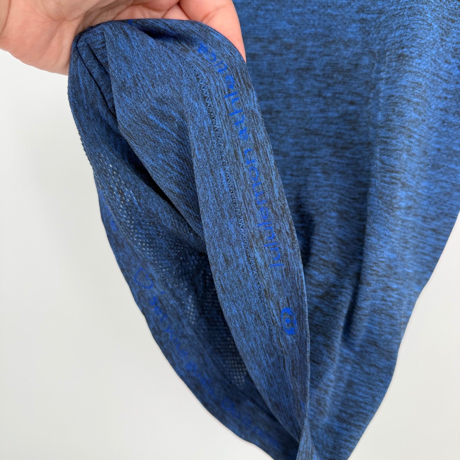 Keywords: Lululemon, athletic, activewear, performance, workout, running, seamless, breathable, athleisure, sporty, casual, t-shirt, top, blue, heathered