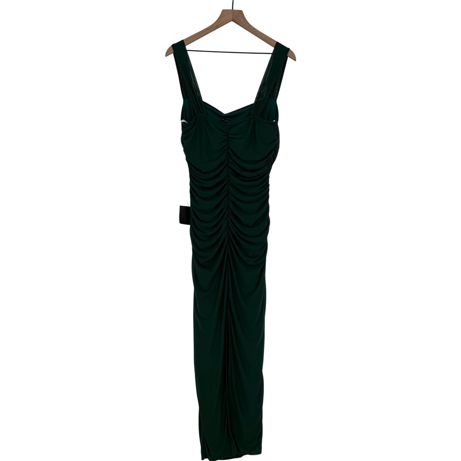 Lulus Amazing Presence Dark Green Mesh Ruched Column Maxi Dress Size XL