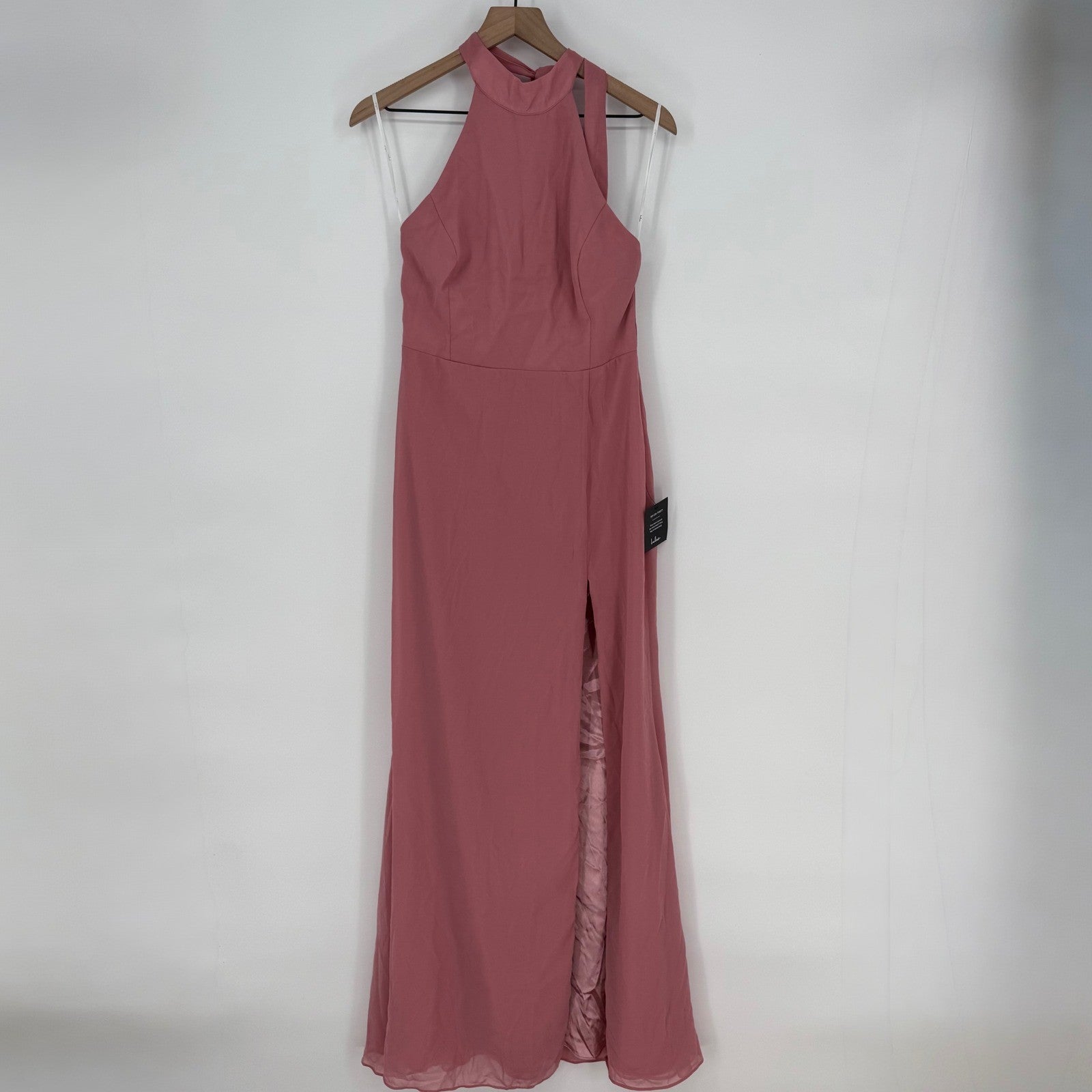 Keywords: Lulus, Mauve Pink Dress, Halter Neck, Sleeveless, Maxi Dress, Slit Dress, Formal Dress, Prom Dress, Wedding Guest Dress, Evening Gown, Midi dress, Bridesmaid Dress, Special Occasion Dress