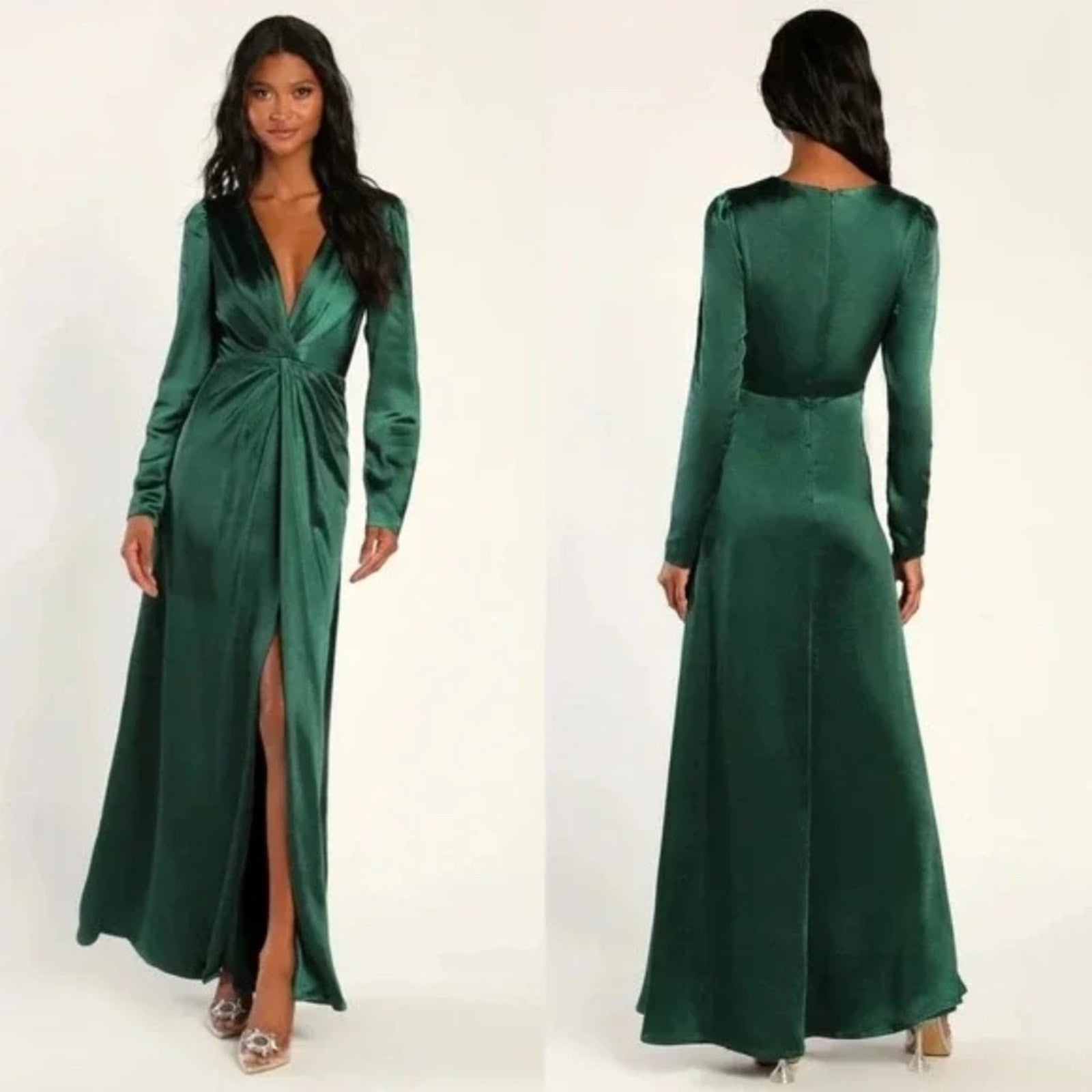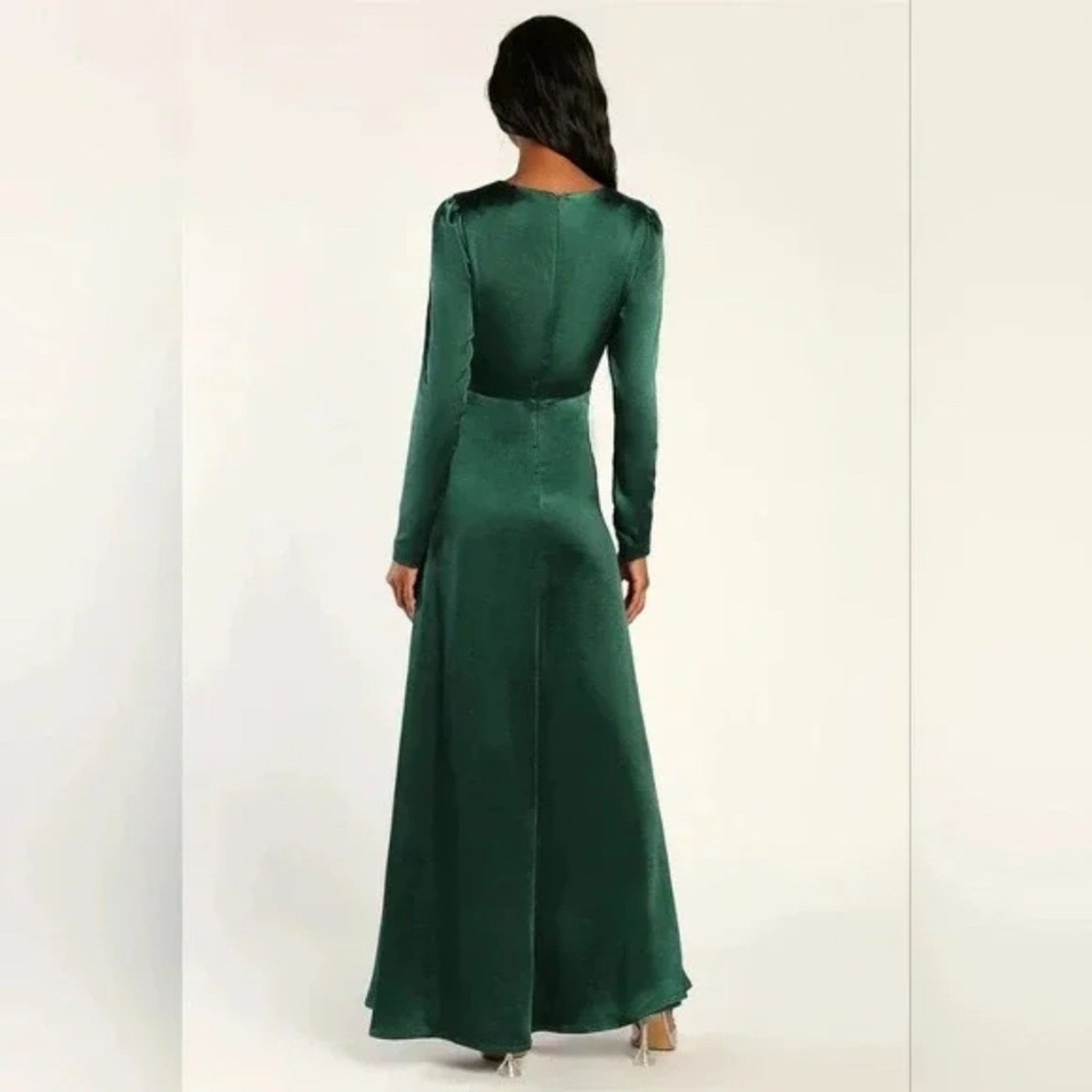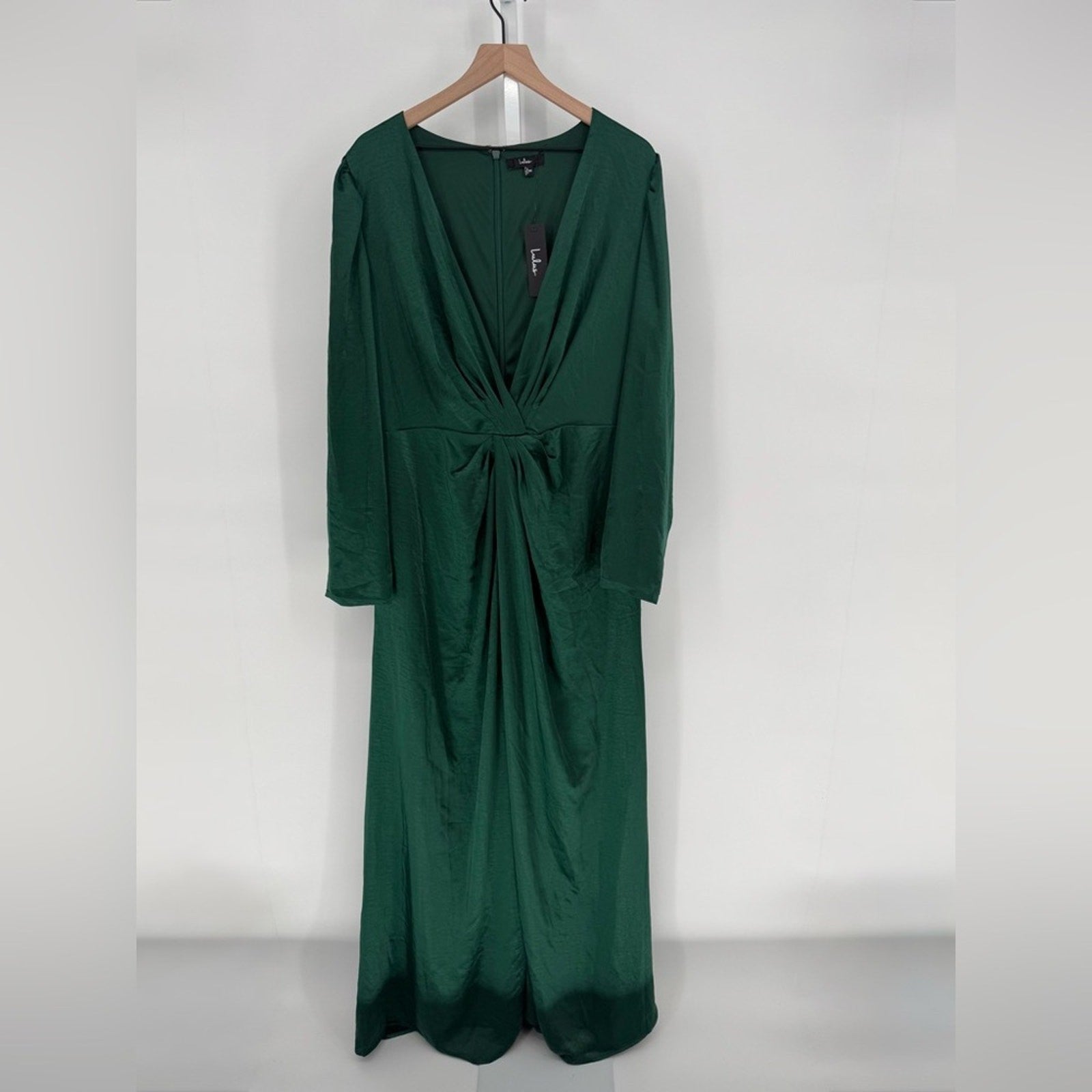 Lulus Endearing Elegance Emerald Green Satin Long Sleeve Maxi Dress Size 3X