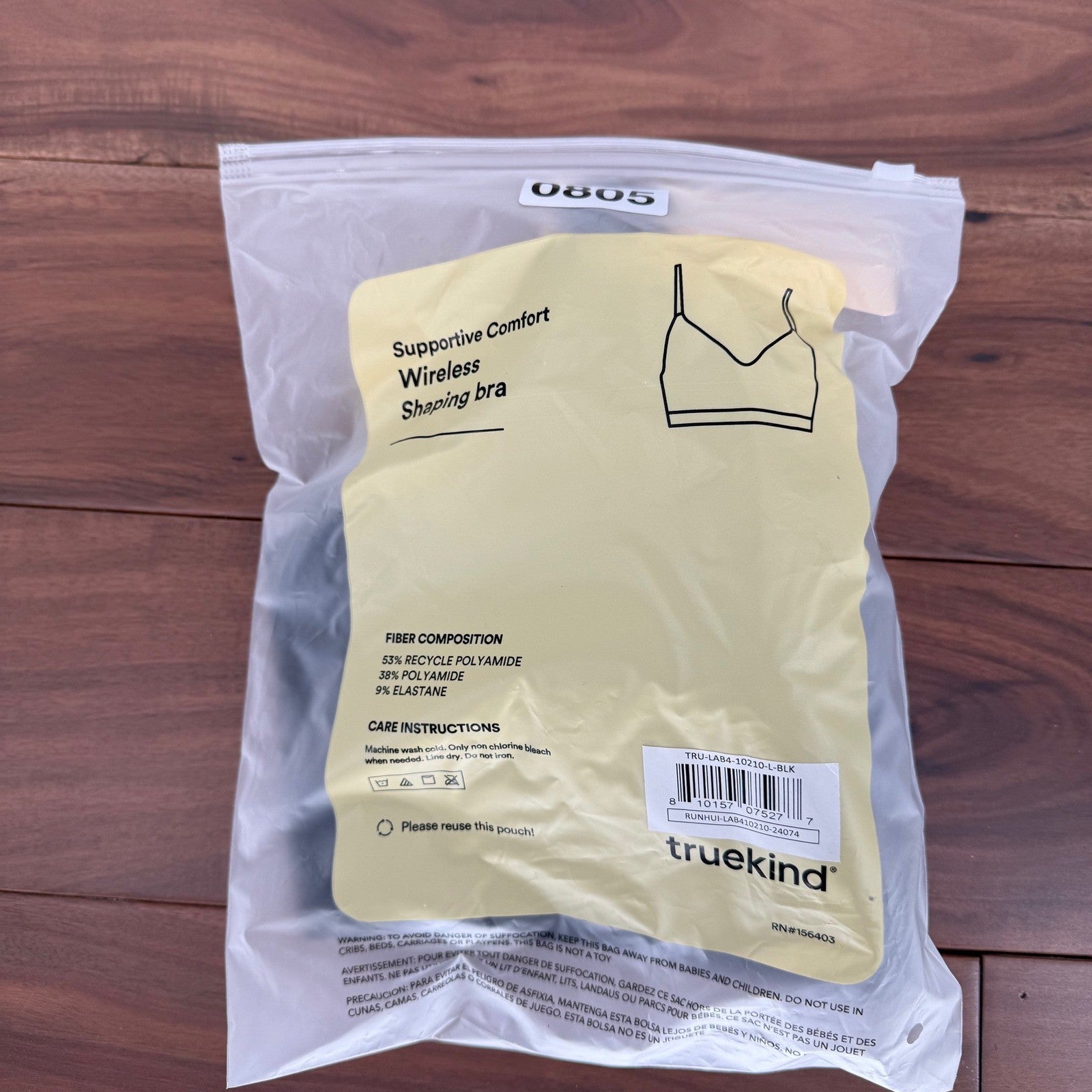 Keywords: Truekind bra, wireless bra, shaping bra, comfort bra, supportive bra, black bra, everyday bra, lingerie, size L, new with tags, no wire bra, contour bra